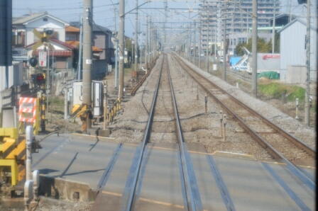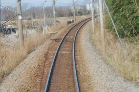 やがて上下線が別れるため、まるで単線になったかのような姿で走ります。