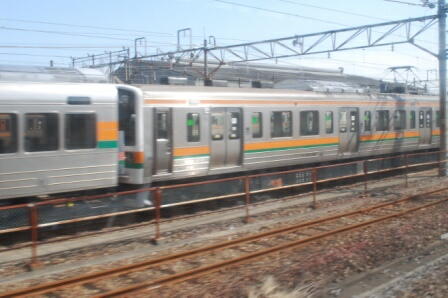 「高崎駅」手前で、珍しく『八高線』列車とすれ違う。